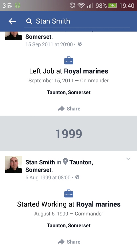 After a quick search of Stan or Gareth it was clear he had never served as a Royal. Some of his other profiles where he flips from Royal Marine to a CPO at MI6.