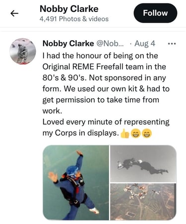 But here is the strange thing. Nobby has never attempted the All Arms P Coy or a military parachute course. He was also never attached to an airborne or SF unit.
