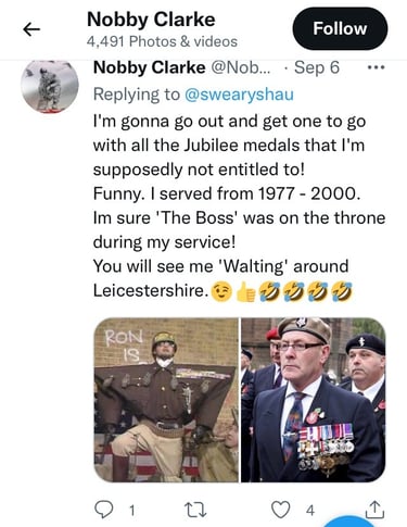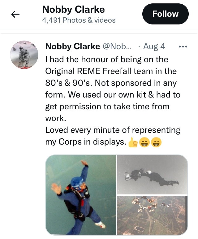 They don’t come as silly as this one! Meet Nobby Clarke who served in the REME from 1977 to 2000 which he should be proud.