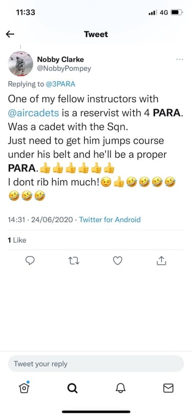 Even more strange when Nobbys service number and name was past onto our contacts he could not be found on the Para course database or that of P company.