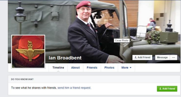 Meet Ian Broadbent. Exposed Walter Mitty and since our old page went down has since risen back to his walting ways…..until now. Back in February 2016 Ian was reported to us over his conduct at his local RBL. So we did our thing. Read on
