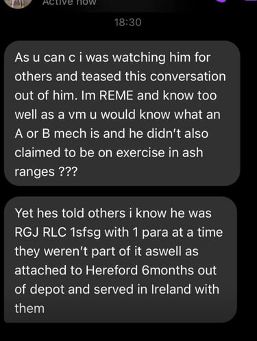 He claimed to some he had served in Afghanistan with 1 Para SFSG. To others the RGJ.