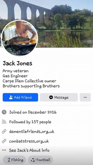 Jones took in a number of veterans on a carp fishing page called Carpe diem collective.