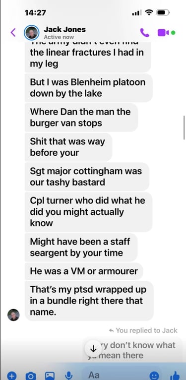 Jones then uses the letters as his compelling evidence to claim a War Pension due to his alleged PTSD which started off by feeding the doctor a few dits.