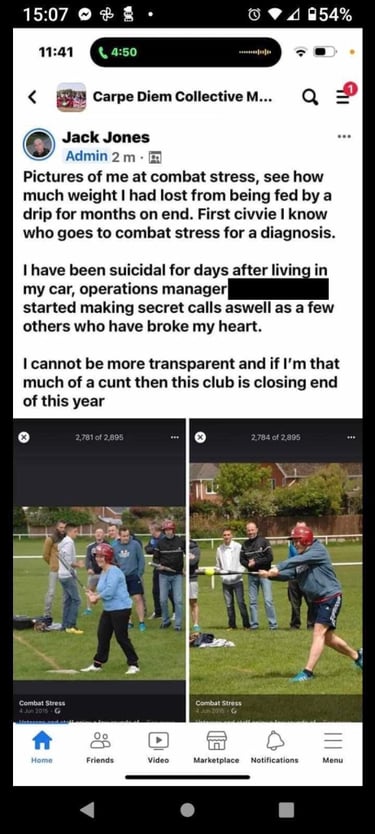 Jones would use a well rehearsed tactic of diversion and counter claim used by scammers to cast anyone who continued to question them in a bad light. One organisation is a well known PTSD charity, Talking 2 Minds which suspected Jones was up to no good.