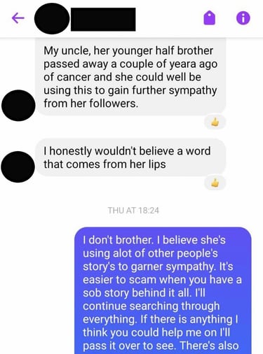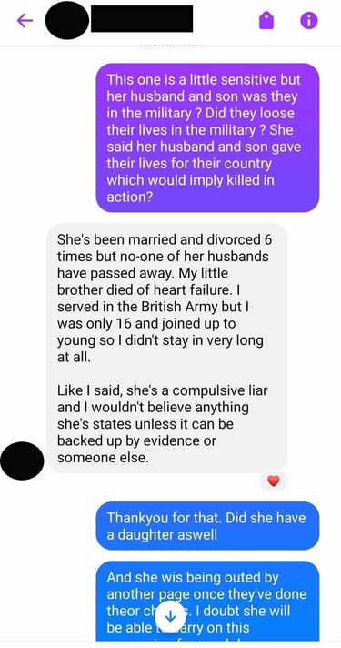 We received an inbox from Afghan Nick asking us to take a look into Joane Wood, as he had received intel that Joane had previously claimed they were a veteran on YouTube, then acted very aloof and scarpered when probed by a couple of our members.