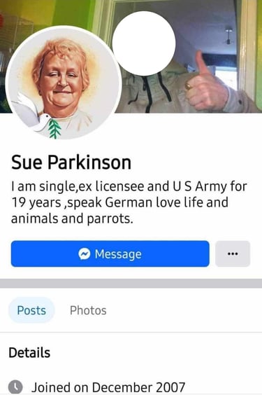 Oh what a gift we have. Meet Joane Wood more commonly known as Joanne Wood/Sue Parkinson but also uses the aliases Lawrenson, Holiday, Alberts & Bainbridge to name a few... Not only does she claim she was a US Major spanning a career of 19 years...