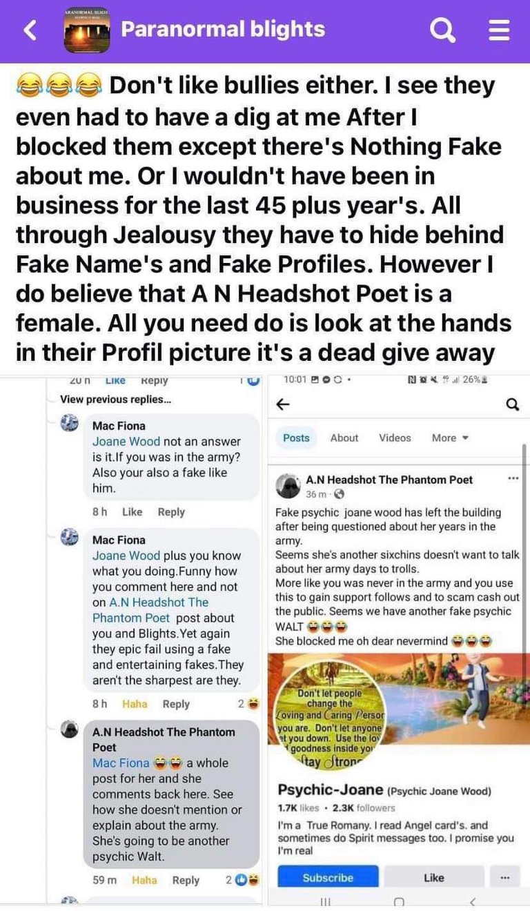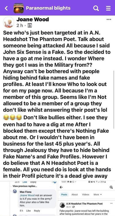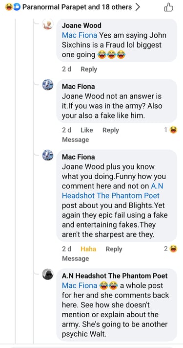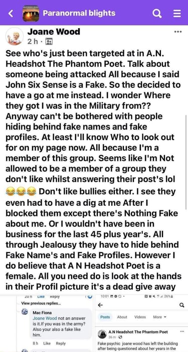 Joane then ran to a paranormal group which can only be described as a hive of hinderance or as Sixchins affectionately names them the "HIGH HATE GROUP"