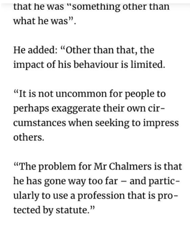 Chalmers was clearly claiming to be a member of the Parachute Regiment and had used the art of subtle walt suggestions to make such claims on social media.