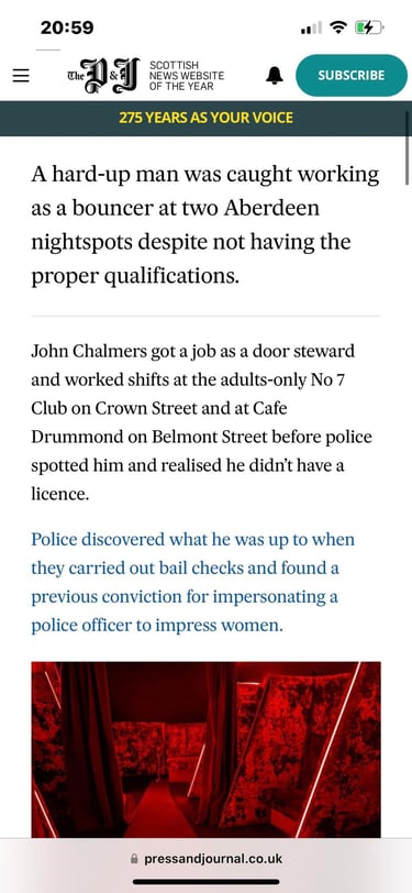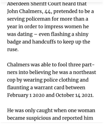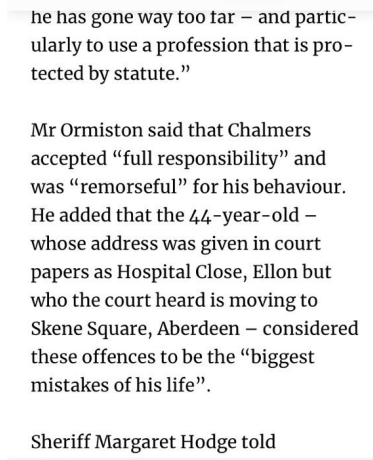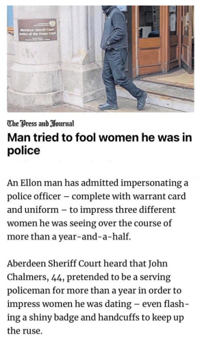 Another bluffer for the books, taking advantage of people and who can be found hanging around Aberdeenshire giving shit dits of being an ex para and working for Police, fire, ambo, coastguard or whatever the cluck he dreams up that week.