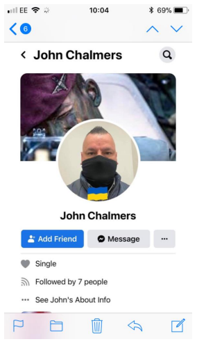 Chalmers was reported to us a few weeks back after a member notched he was making claims about his military background as a Paratrooper.
