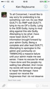 You’ve been cumperd Ken look what Dave Sting just posted you. We managed to get the photos why are you wearing the RMP and household cav Tshirts dated 201. The same units in your original post that you claim you have never made out to be and was just your Ex trying to blacken your name, are you going to try and say your ex hacked them too?