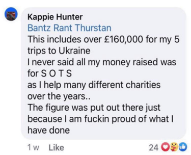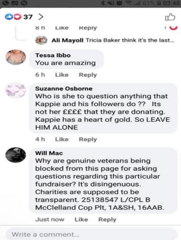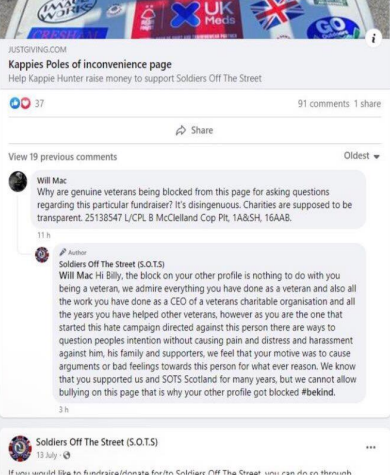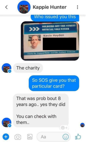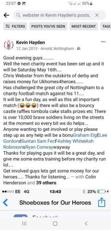 So it’s been established Kevin is a fundraiser for Military Charity Soldiers Off The Street, and from his recent posts he raised just over £29k for “THE REAL SOLDIERS & VETERANS OF OUR COUNTRY” in a single recent event he took part in. That’s a lot of money, with lots of people donating to make that amount up.