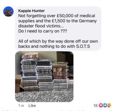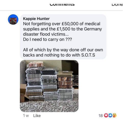 He’s claiming he took over £50,000 worth of medical supplies. How can it be 50k if he was asking the public to donate their prescription drugs to him? More lies to bolster people’s perception of himself!