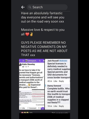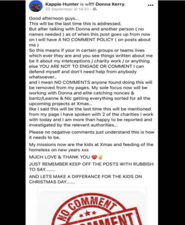 Now here is where the trouble starts, concerned to see where the money was going, several people started asking questions relating to transparency, but got no reply from kevin, instead they got blocked by kevin, then kevin issued a warning to his followers not to communicate with these people, or face being banned from his profile and pages. Not very sporting or transparent is it?