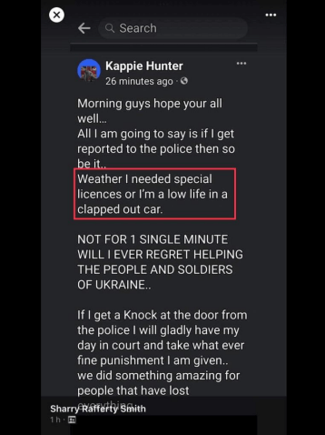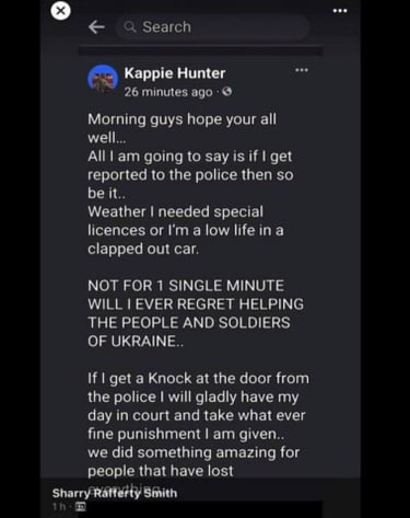 Not one to be outdone, our sticky fingered drugs mule then takes to social media, and pretty much admits to not having the relevant paperwork, and goes on to say he`ll take whatever fine the courts give him, and to justify it all, he says he did something amazing for the people that have lost everything. Not sure if he`s referring to the people of Ukraine, or the people that parted with their hard cash to him.