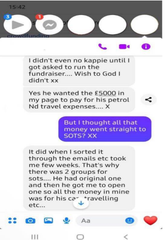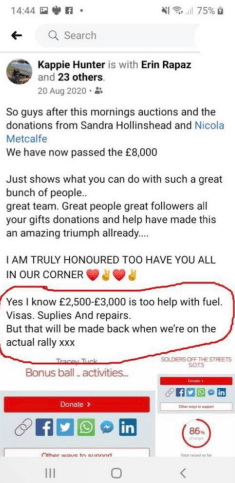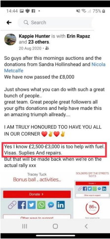 Also, for the car rally he was doing, he wanted £3-£5k for expenses for fuel, visas etc, he expected the donors to pay for this.