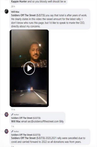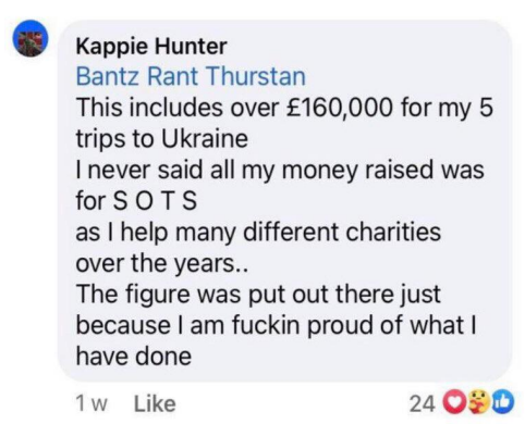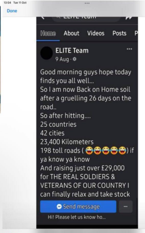 Now to the crux of the matter. The money raised for numerous charities, the main being SOTS, RBL. He’s not very clear or sure from one post to the next where money is going. To which bank account or charity. One thing’s for sure, a lot of money seems to be going to his bank account for expenses.
