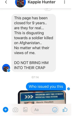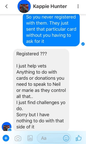 The charity blocked a veteran for asking questions, then tried to say the veteran had started a hate campaign directed at Kevin.