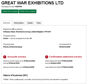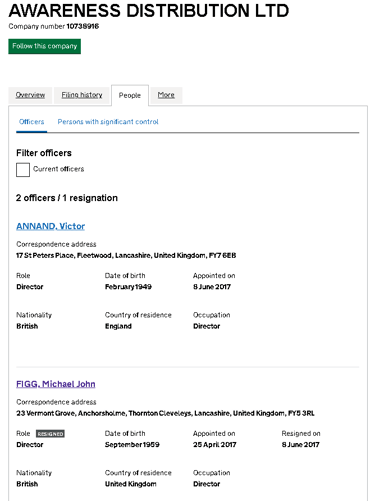 Known Forces charity scammer Micheal Figg – Companies House. Awareness News has now been struck from the Companies Register by CH so no accounts to cover Figgs collecting from April 2017 to date.