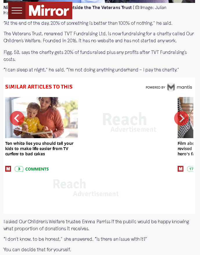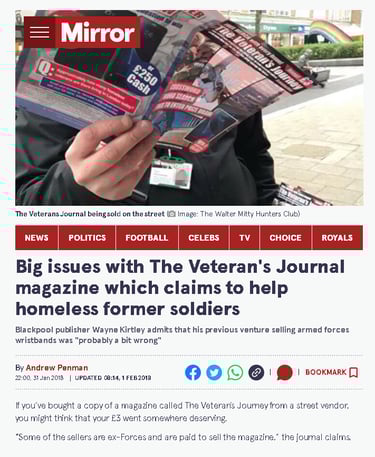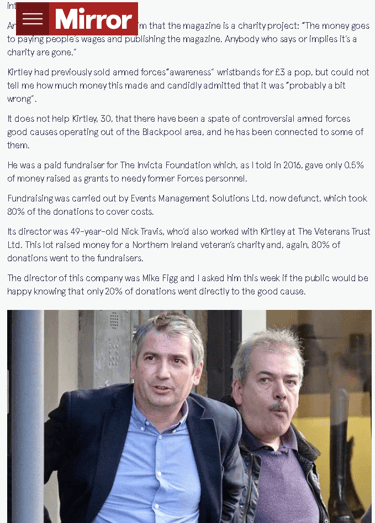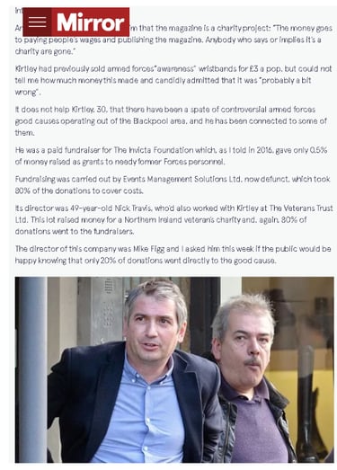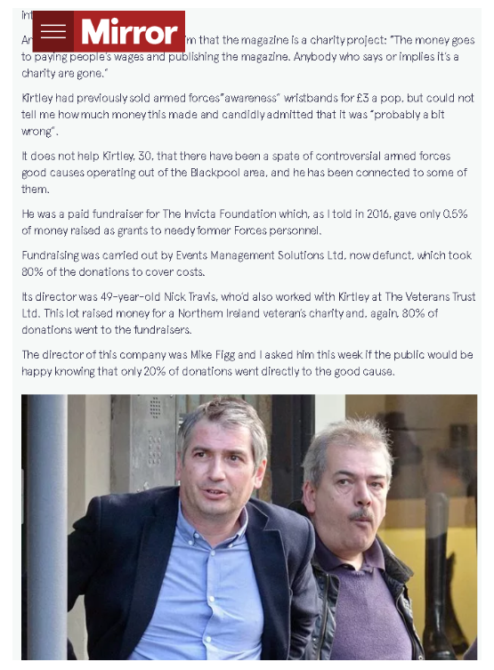 When the BBC used our evidence to expose another charity scam. Those who have been with us long enough will remember when the MD of Support for Heroes and 1st Knight made the very same threats as the new scam on our radar