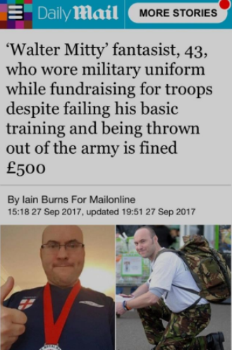 Meet ROLLS ROYCE EMPLOYEE OF THE WEEK WALTER MITTY – MR CHRIS WEBSTER AND HIS CHARITY THIEVING. Webster would later be exposed for sending unwanted naughty pictures of himself to serving soldiers wives and later convicted for wearing uniform while collecting for charity to fool the public.