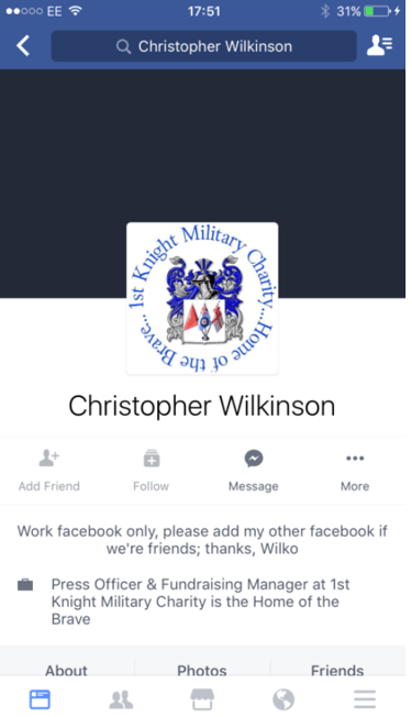 Unlike our previous Walts from the nonce hunting scene, Kevin here, is not a walt, but has some very serious and dubious dealings within the military charity sector, that was brought to our attention.