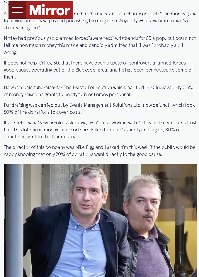 Like Figg Sandbach is another name who keeps popping up like an unflushable turd connected to dubious organisations who use the reputation of the armed forces to scam money from the general public via Charity raffles and magazines.