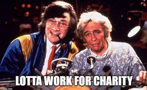 Just like the others... A small %, if any goes to charity or the cause intended.
