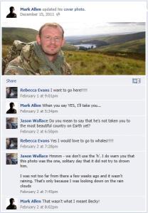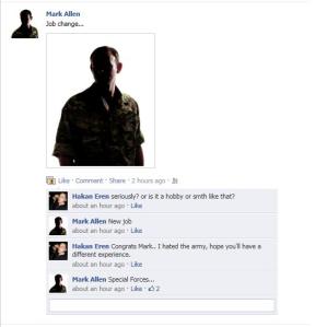 We then asked Mark Allen why his profile was openly posting details of his rank ,unit and location against Special Forces personal security procedures which are published in their standing orders on an un secure web page, to which out intrepid hero claimed must have been hacked and he will get to the bottom of it once he has returned from overseas.