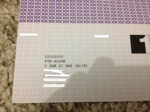 We noted it was made out to Trp Mark Allen but then his pay statement was very odd as it had him down as a PTE with C Sqn 21 SAS (a) (r) and not a Tpr. After a quick phone call. It turned out as we thought, our Mark Allen international man of mystery and like the Baron James Shortt was attached as a blanket stacker for a very short period and was never a badged member of the regiment. In fact the only selection he had done was navigating the map on a box of bournville selection.