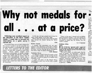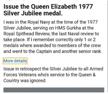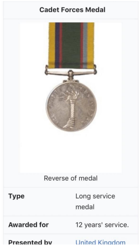 3. Clearly if still at school in 1978 the individual had not taken the queens shilling and so was not eligible for one of the 9,000 QSJM being issued to members of the armed forces (cadets are not members of the armed forces)
