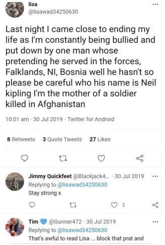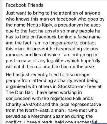 Kipling had attempted to infiltrate an organisation until his lies were rumbled and in true Walter Mitty style decided to attack a grieving mother in order to deflect attention from his lies.