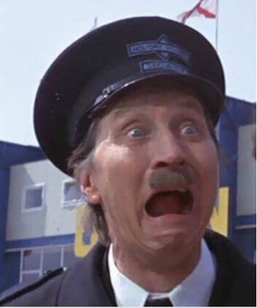 The look on his face and people looking at him says it all.