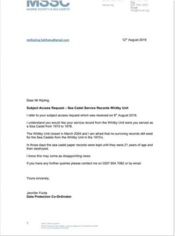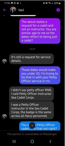 When trying to get hold of his records to prove he served, he was sent this and basically tried to pass this off as proof to people not in the know however someone did know and was soon blocked after questioning Kipling.