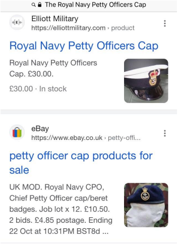 The Royal Navy Petty Officers Cap. He was never in the Royal Navy and again this was confirmed via our contacts and the only trace of Kipling was in the form of French Fancies and Cherry Waltwells on the galley menu.
