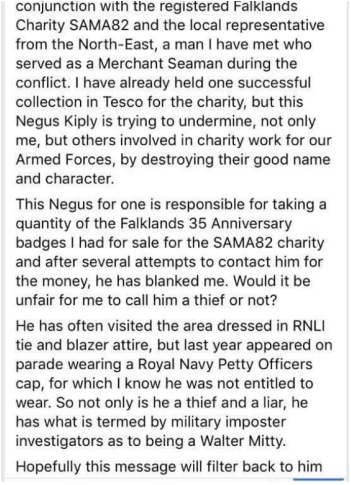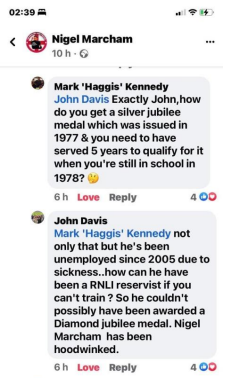 He had done a short stint in the RNLI at Whitby in 1980 however at the time all his Jubilee medals were issued he was never in service and Kipling has never been able to provide any evidence to back up His entertainment.
