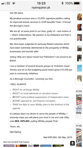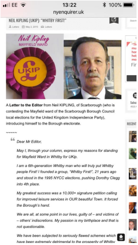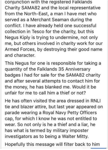 Additionally when Kipling was a member of UKIP he never once mentions having served yet boasts of his successes which suggests a rather over inflated opinion of himself. Narcissist springs to mind.