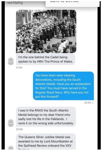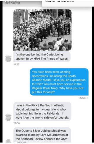 And so it continues as he’s still trying to maintain he served without providing anything substantial to prove it in order to make all the doubts go away. Kipling again was then put on the spot by a genuine Royal Navy Veteran.