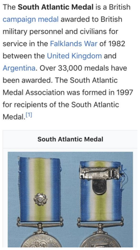 The South Atlantic Medal 82 which Kipling had never been awarded as he had never served in Falklands war. We know this as we checked and he does not appear on the SAMA orbat.