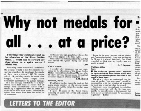 Again considering Kipling was a boy cadet in 1977 and not in man service at the time the medal was awarded. It’s impossible for Kipling to have even been eligible. Then add the very limited issue of the QSJM which angered many a Jack tar.