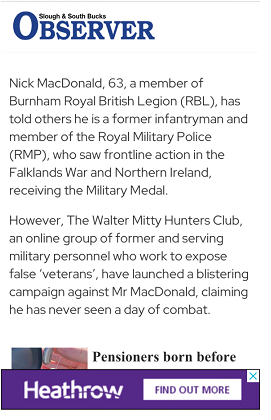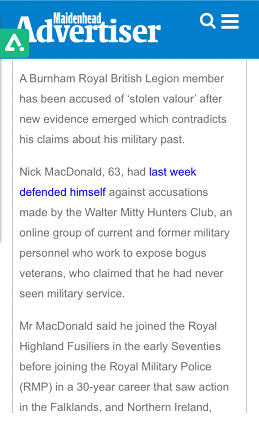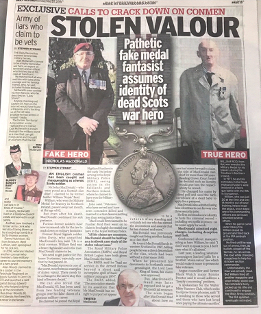 The facts are MacDonald is a full blown Walt having never passed basic training and putting himself across as a former Falklands vet and winner of the MM and MID on his GSM.