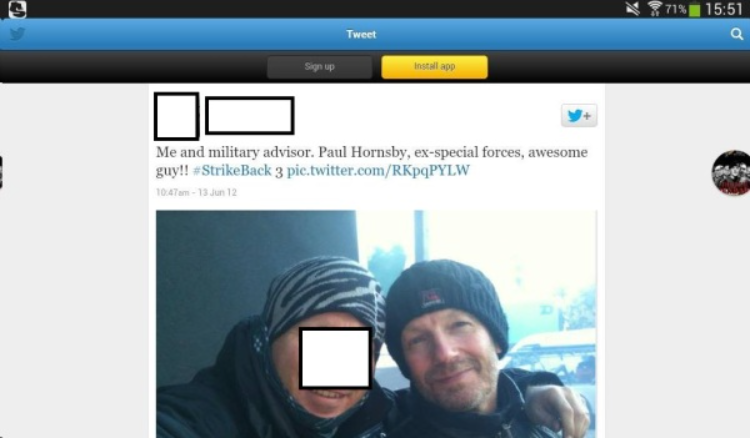 So to that end we started to dig a little deeper on Paul Hornsby to find out more about his real service. We found him on Linkedin and his career profile was glittering, for the film world, yet very shy about his Military past which just mentions. Army, NCO 1977-1986. Not much to go on there and quite possibly if he were 14 Int or SBS he would want to keep a low profile for the obvious reasons, but odd if promoting yourself as a Military advisor.