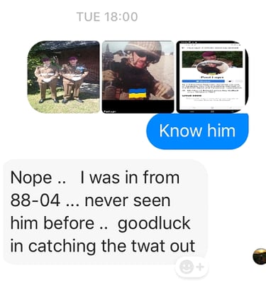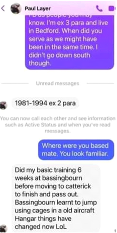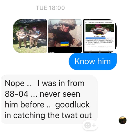 Then our contacts to checked out his Para Records and again not a hint of a P Layer on record as having attended a Basic Para course or even P Company. What a Player😉