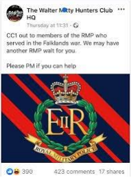 The RMPA are unable to substantiate any claims made by Mr Jackson relating to service in the RMP, or indeed any other such statements made by him on public forums which may lead people to believe that he served and earned any rank, awards, recognitions, qualifications, titles, or honorary rank. The RMPA has attempted to approach Mr Jackson via email and phone in order that it may verify with him any of the claims currently causing upset within the wider Veterans’ community. Such attempts have not elicited a response, at the time of writing. The RMP took part in the liberation of the Falkland Islands in 1982 and is able to identify all those who wore our cap badge at the time who deployed as part of the Task Force.