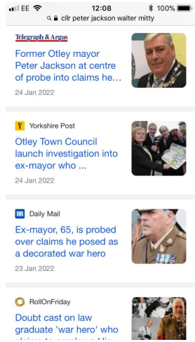 To end this sorry tale up other questions are now being asked over his legal qualifications, business claims and other such things outside of our remit. But even sadder is the fact for so many years he managed to fool the town folk of Otley for so long and get himself in such a high position of authority. What other damage has his walting done to others. Only time will tell.