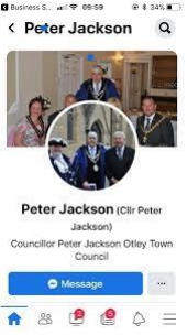 A statement from the Royal Military Police Association (RMPA) regarding Cllr Mr Peter Jackson Otley Town Council West Yorkshire: