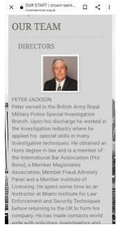 He is the director of a company called Crown Legal Services that has a dodgy website displaying obviously fake profiles of Associates (Now deleted), one of whom he claims is a High Court Judge despite being no older than 35 and not appearing on the list of Senior Judiciary appointments. All very odd. But back to Jackson.