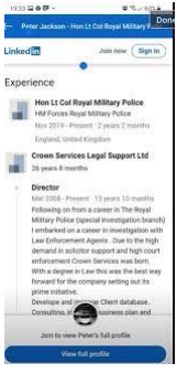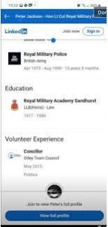 However we dig deeper and no service history could be found on Peter Jackson and considering the length of service he’s claiming on LinkedIn to have served you would have thought at least one person would have.