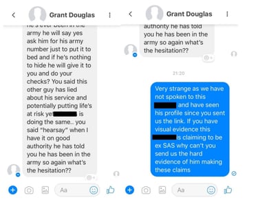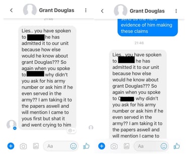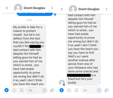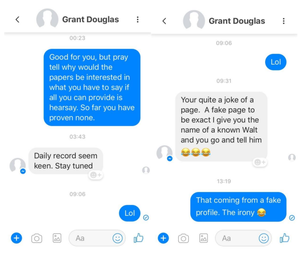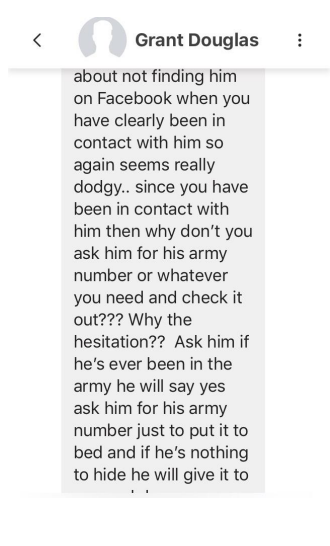 Then something even stranger took place. A fake profile contacts the WMHCHQ claiming an individual who is part of a team investigating St Claire is a Walter Mitty. You will see from the screenshots the profile is using hearsay and fails to supply any visual evidence.